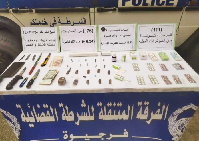 تمكنت #الفرقة_المتنقلة_للشرطة_القضائية_فرجيوة (#BMPJ) من توقيف أربع أشخاص كانوا بصدد بيع وترويج كميات من #المخدرات و#المؤثرات_العقلية على مستوى مدينة فرجيوة.