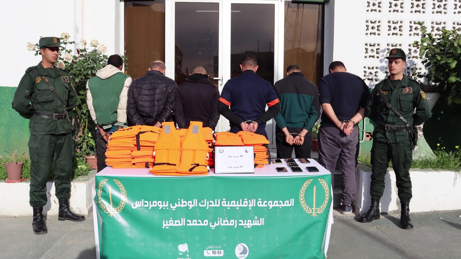 في إطار محاربة الجريمة المنظمة بكل أشكالها عبر إقليم المجموعة الإقليمية للدرك الوطني ببومرداس، نفذت وحدات المجموعة عديد العمليات، ففي ميدان الهجرة غير الشرعية قامت كل من مصلحة البحث والتحري ببومرداس والفرقة الإقليمية للدرك الوطني برأس جنات بمعالجة قضيتين تم خلالهما تفكيك شبكتين (02) إجراميتين مختصتين في تدبير الخروج غير المشروع من التراب الوطني لأشخاص عبر البحر مقابل مبالغ مالية، حيث تم توقيف 12 مشتبه فيه منظمين لعمليات تهريب المهاجرين العابرة للحدود الوطنية وحجز قارب و30 سترة نجاة.