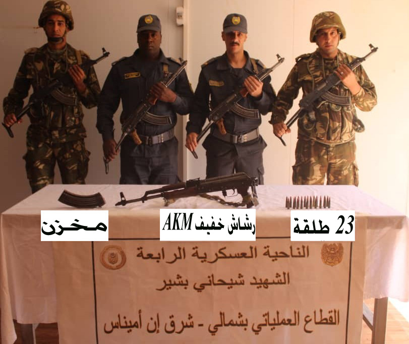 بالإضافة إلى ذلك، ضبط الجيش مسدس رشاش آخر من نوع #كلاشنيكوف وسبعة (7) مقذوفات خاصة بقاذف صاروخي #RPG-7، إلى جانب تجهيزات وأغراض أخرى، وذلك بالقطاع العسكري #تمنراست ضمن #الناحية_العسكرية_السادسة.