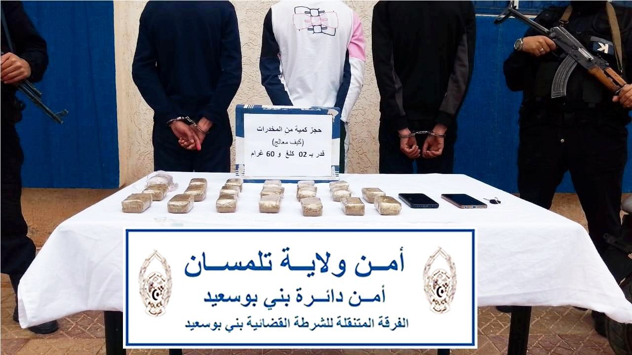 وأسفرت العملية عن توقيف ثلاثة (03) أشخاص يشكلون عناصر هذه الشبكة، بعد تحريات ميدانية دقيقة مكّنت من تحديد نشاطهم الإجرامي. كما تم حجز أكثر من 02 كلغ من الكيف المعالج، كانت موجهة للترويج، إضافة إلى دراجة نارية كانت تستعمل في تنقلاتهم وتنفيذ نشاطهم غير المشروع.
