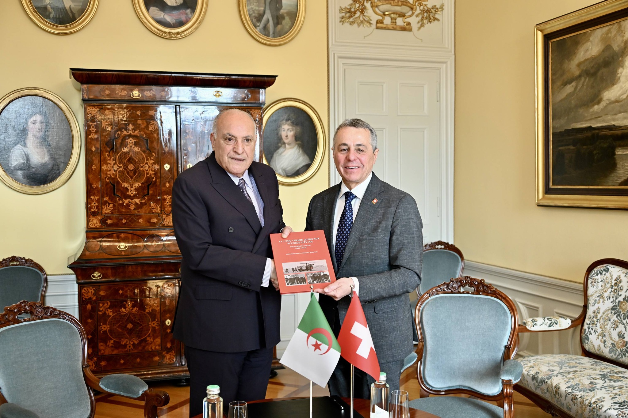 وعلى هامش المحادثات، اطلع الوزيران على عرض تاريخي حول العلاقات الجزائرية-السويسرية، الذي تضمن إسهام الأصدقاء السويسريين في دعم الشعب الجزائري خلال الثورة التحريرية، ودورهم في تسهيل مفاوضات إيفيان التي أدت إلى استقلال الجزائر. وأكد الطرفان أهمية تثمين هذا الرصيد التاريخي المشترك والاستفادة منه في تعزيز تقاليد التضامن والصداقة بين البلدين، لضمان استمرار التعاون على أسس متينة ومستدامة.