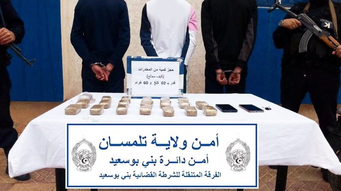 تمكنت عناصر الفرقة المتنقلة للشرطة القضائية بني بوسعيد، بأمن ولاية تلمسان، من توقيف 03 أشخاص متورطين في قضايا ترويج المخدرات. وأفاد المصدر الأمني أن العملية أسفرت عن حجز 2 كلغ و60 غ من الكيف المعالج بالإضافة إلى استرجاع دراجة نارية كانت في حوزة المشتبه فيهم، في إطار الجهود المتواصلة لمكافحة انتشار المخدرات وحماية الشباب والمجتمع.