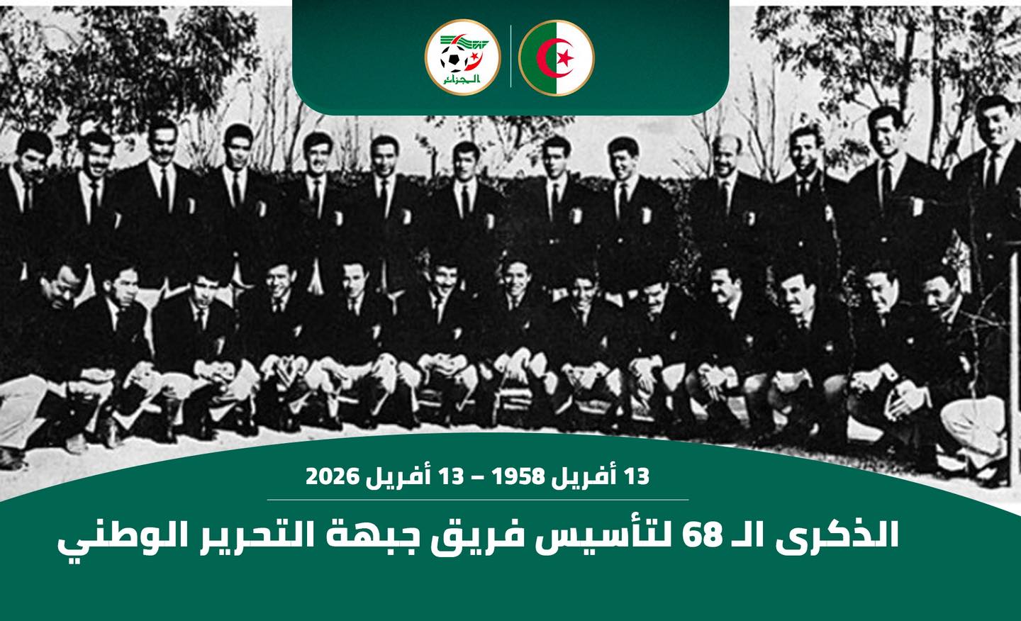 أحيا #الاتحاد_الجزائري_لكرة_القدم الذكرى الثامنة والستين لتأسيس #فريق_جبهة_التحرير_الوطني، في مناسبة تاريخية تستحضر واحدة من أبرز المحطات النضالية التي جسّدت تلاحم الرياضة مع الكفاح التحرري من أجل استقلال الجزائر.