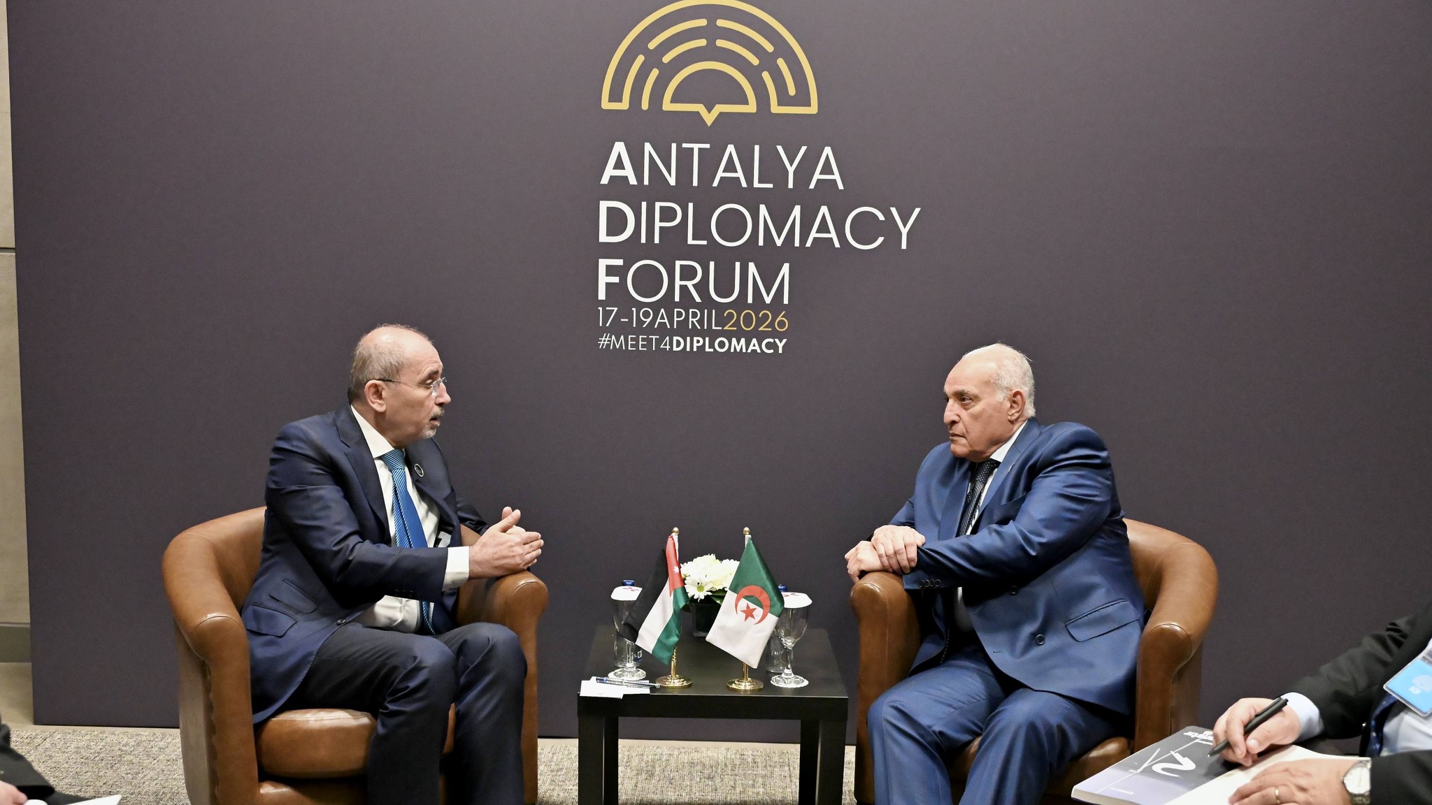 على هامش مشاركته في #منتدى_أنطاليا_الدبلوماسي، أجرى وزير الدولة، وزير الشؤون الخارجية والجالية الوطنية بالخارج والشؤون الإفريقية في الجزائر، السيد أحمد عطاف، محادثات ثنائية بمدينة أنطاليا مع نائب رئيس الوزراء ووزير الخارجية وشؤون المغتربين في المملكة الأردنية الهاشمية، السيد أيمن الصفدي.