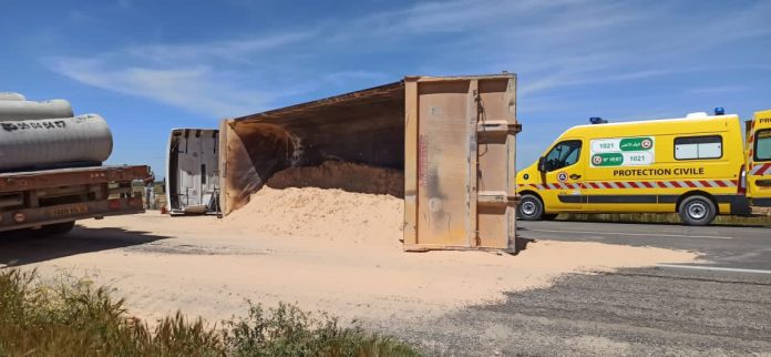 تدخلت مصالح الحماية المدنية في حدود الساعة 12:28 من نهار اليوم، إثر حادث مرور خطير تمثل في انحراف وانقلاب شاحنة محملة بالرمل على مستوى الطريق الوطني رقم 40 بمنطقة بئر السويد، بلدية ودائرة شلال.