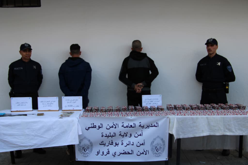 في إطار الجهود المتواصلة لمحاربة ظاهرة الاتجار بالمخدرات والمؤثرات العقلية، تمكنت مصالح الأمن الحضري قرواو بأمن دائرة بوفاريك التابعة لأمن ولاية البليدة، خلال الأسبوع المنصرم، من تفكيك نشاط إجرامي وتوقيف شخصين مشتبه فيهما، مع حجز كميات معتبرة من السموم ومبالغ مالية من عائدات الترويج.