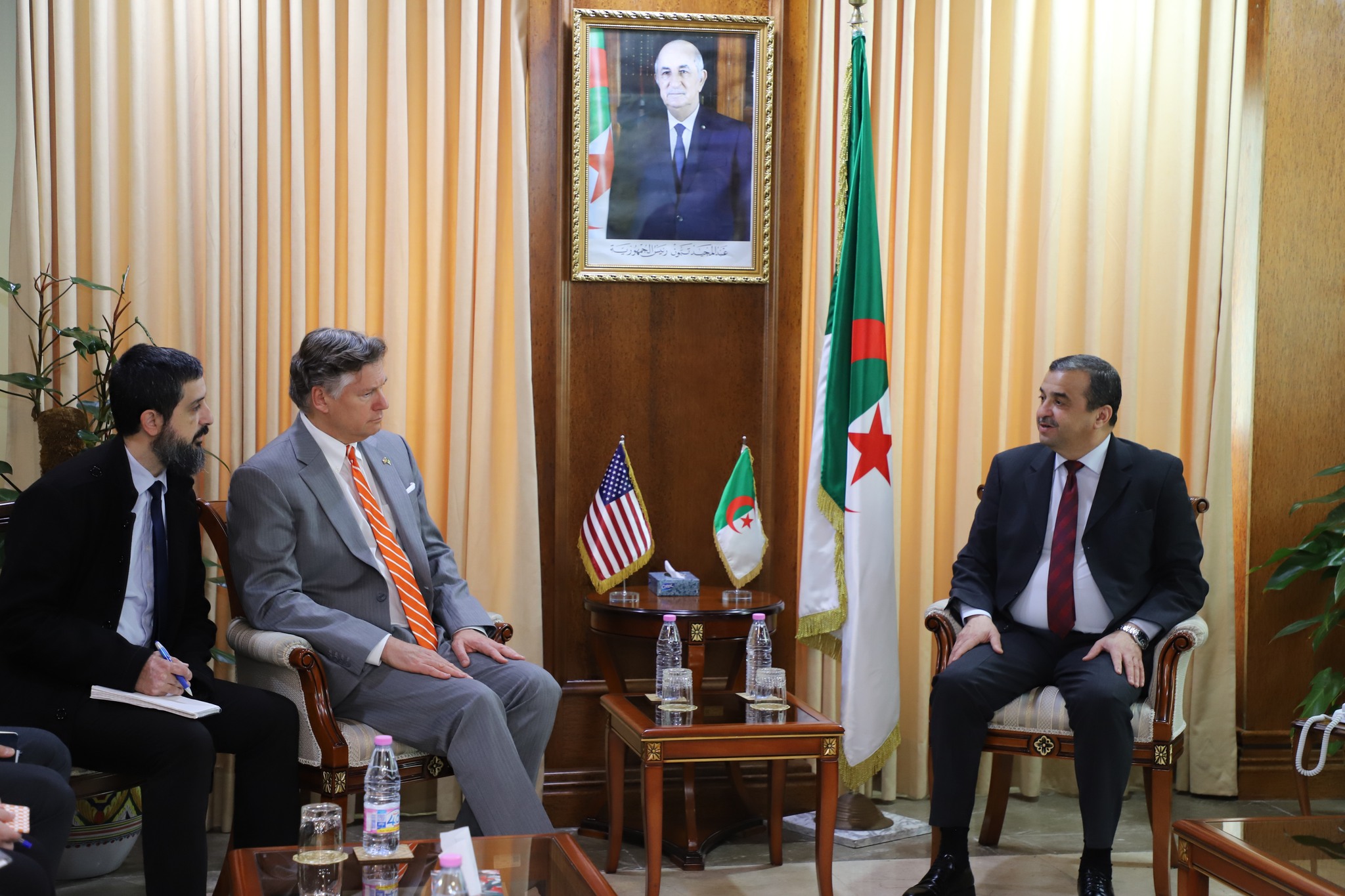 استقبل وزير الدولة، وزير المحروقات، السيد محمد عرقاب، يوم الاثنين 27 أفريل 2026، بمقر دائرته الوزارية، نائب وزير الخارجية بالولايات المتحدة الأمريكية، السيد كريستوفر لانداو، الذي يقوم بزيارة عمل إلى الجزائر.