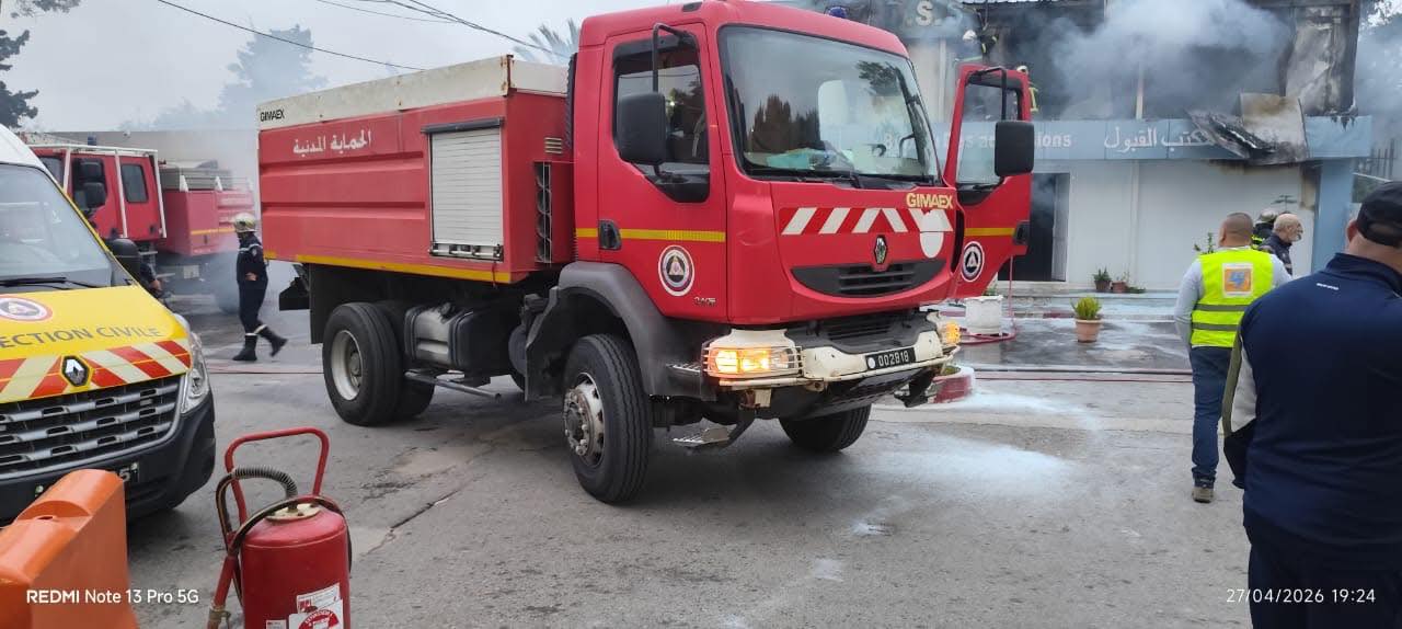 وأوضح بيان المصالح المعنية أن موقع الحريق يتمثل في بنايات جاهزة، حيث امتدت ألسنة اللهب لتشمل أربعة مكاتب على مساحة تقدر بحوالي 100 متر مربع، قبل أن تتمكن فرق الإطفاء من التحكم في الحريق ومحاصرته.