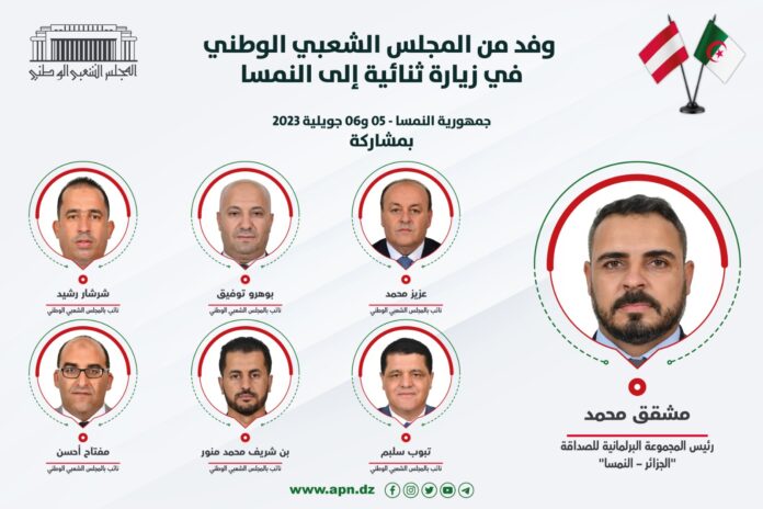 يقوم وفد عن المجموعة البرلمانية للصداقة “الجزائر-النمسا”، يومي 05 و06 جويلية 2023، بزيارة إلى جمهورية النمسا وذلك تلبية لدعوة من رئيس مجموعة الصداقة البرلمانية لشمال إفريقيا بالمجلس الوطني النمساوي السيد نيكو مارشيتي.