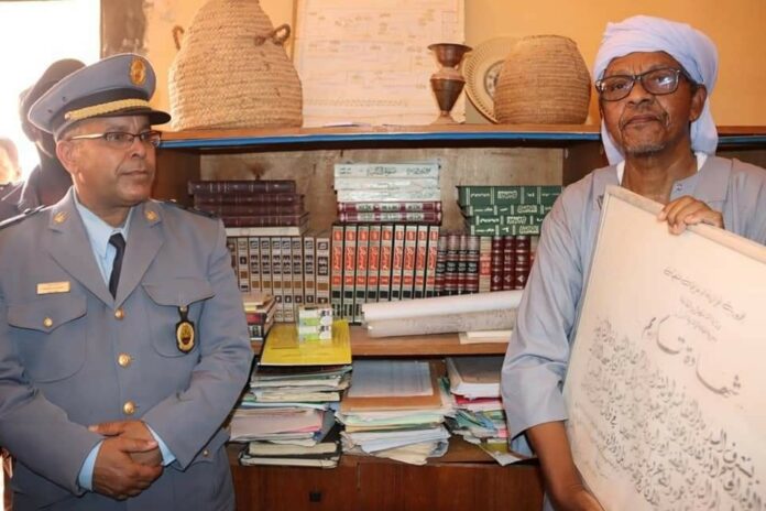 تنفيذا لتعليمات السيد رئيس الجمهورية القاضية بحماية الموروث الثقافي الجزائري و الحفاظ على الذاكرة الوطنية، وبمتابعة من السيدة وزيرة الثقافة والفنون صُورية مُولوجي ، أقدم المركز الوطني للمخطوطات بأدرار على تنظيم حملة تحسيسية على مستوى القصور الغربية للولاية، حيث زار الفريق المتكون من إطارات المركز وأعوان الحماية المدنية وأعوان مفتشية الجمارك قصري تمنطيط وباعبد الله التي تتواجد بها خزائن لمخطوطات تاريخية، أين وقفوا على وضعية الخزائن رفقة أصحابها والمشرفين عليها حيث قدموا لهم نصائح وتوجيهات تخص آليات الحماية من الحرائق وكيفية التصدي لها، وكذا طرق محاربة ظاهرة السرقة وتهريب الموروث الثقافي خارج الوطن، كما عرضوا علهم تقنيات المحافظة على المخطوطات داخل الخزائن، من حيث المناولة والترتيب والتخزين وكذا الحماية من العوامل الطبيعية .