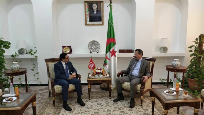 إستقبل وزير الأشغال العمومية والمنشأت القاعدية، السيد لخضر رخروخ، اليوم الاثنين07 اوت2023، بمقر الوزارة سعادة سفير جمهورية تونس بالجزائر ،السيد رمضان الفايض بطلب منه، حيث تباحث الطرفان سبل تعزيز الشراكة والتعاون بين الجزائر وتونس في مجال الأشغال العمومية والمنشآت القاعدية.