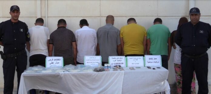 تمكنت مصالح أمن ولاية الجزائر ممثلة في مقاطعة الشرطة القضائية 02 باب الزوار بالتنسيق مع فرقة الشرطة القضائية لمطار هواري بومدي الدولي، من توقيف 07 أشخاص، تتراوح أعمارهم مابين(33 سنة و 50 سنة)، من بينهم امرأة، ينشطون في إستراد والمتاجرة غير المشروعة بالمؤثرات العقلية، وضبط 14382 كبسولة من المؤثرات العقلية، كانت مموهة داخل أكياس تحتوي على مادة الشاي، وداخل علب الحلوى.