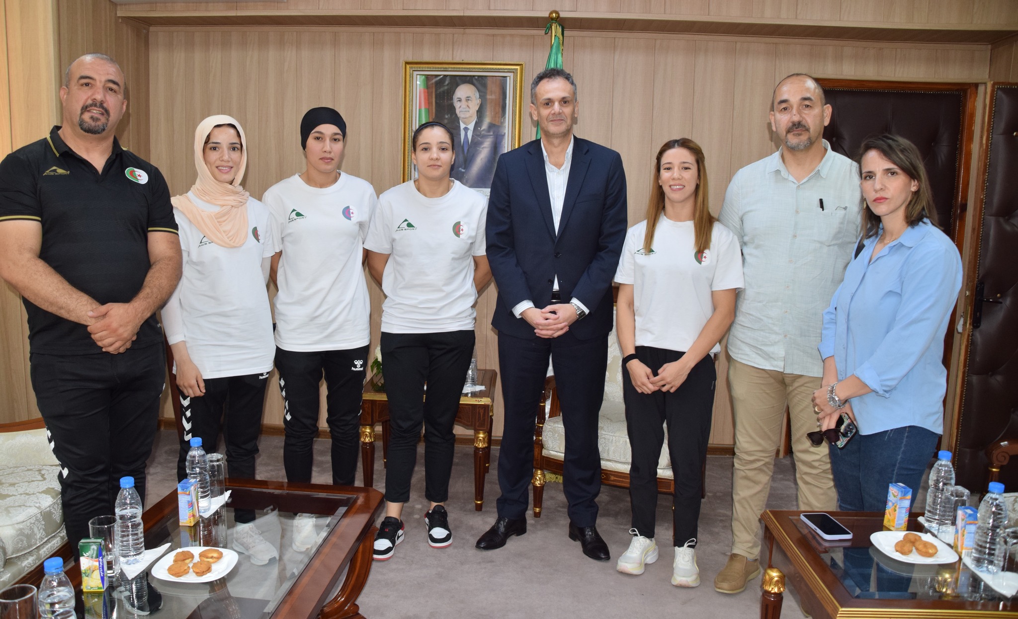 رحب السيد الوزير بالبطلات مشيرا الى النتائج التي حققناهن مؤخرا في البطولة الافريقية التي اقيمت بالكاميرون ، و تحليهن بالأخلاق الرياضية العالية و انتمائهن الصادق في حمل الألوان الوطنية الجزائرية.