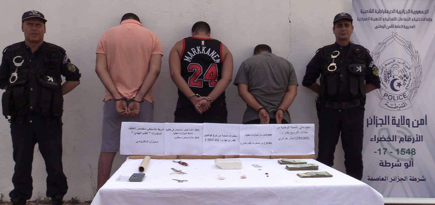 تمكنت مصالح أمن ولاية الجزائر ممثلة في فرقة الشرطة القضائية بأمن المقاطعة الإدارية بئر مراد رايس ، من توقيف (03) أشخاص مشتبه فيهم عن قضية حيازة المخدرات الصلبة كوكايين .