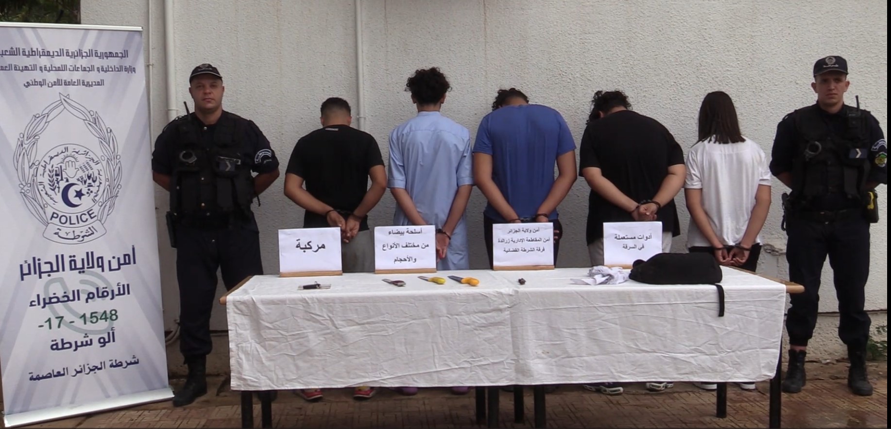 تمكنت مصالح أمن ولاية الجزائر ممثلة في فرقة الشرطة القضائية بأمن المقاطعة الإدارية زرالدة، من توقيف 05 أشخاص مشتبه فيهم – من بينهم امرأة وقاصر، تراوح أعمارهم ما بين 17 سنة و 22 سنة ، متورطين في تكوين جمعية أشرار لإعداد والشروع في جناية محاولة القتل العمدي مع سبق الإصرار والترصد لغرض السرقة بتوافر ظروف التشديد، ظرف التعدد و استحضار مركبة وأسلحة بيضاء من مختلف الأنواع و الأحجام.