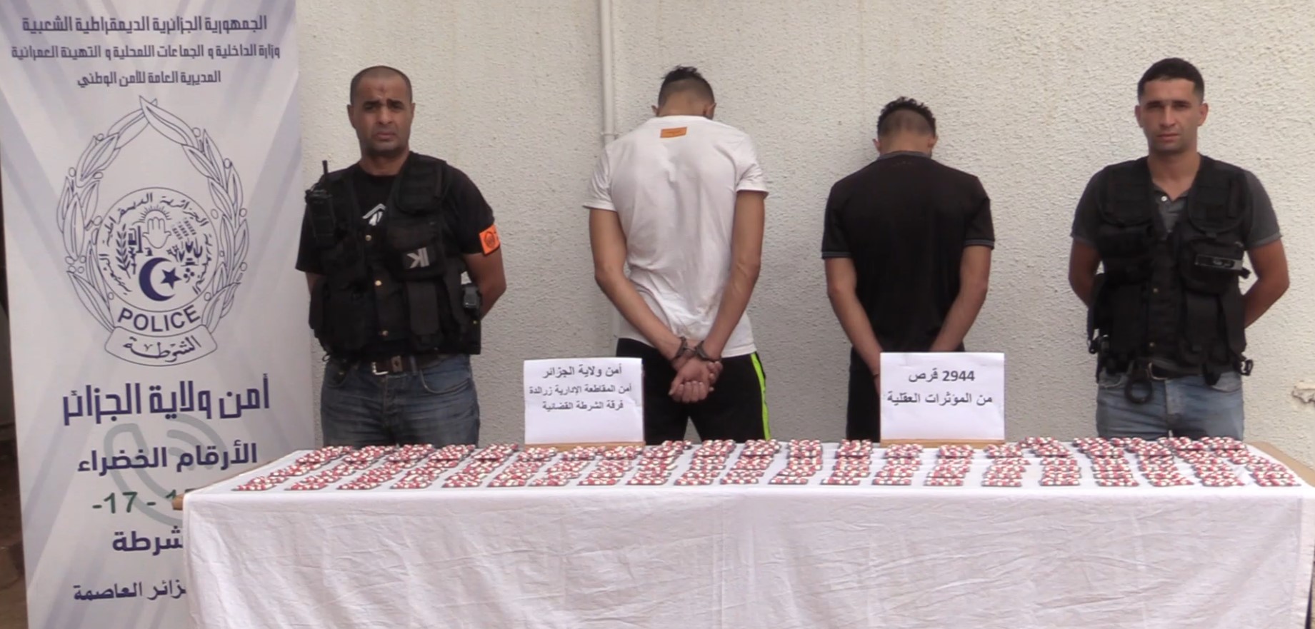 أوقفت مصالح أمن ولاية الجزائر ممثلة في فرقة الشرطة القضائية بأمن المقاطعة الإدارية زرالدة شخصان (02) مشتبها فيهما عن قضية الحيازة و التخزين و المتاجرة في المؤثرات العقلية بطريقة غير شرعية في إطار جماعة إجرامية منظمة.