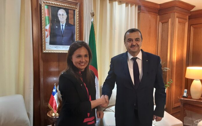وجرى هذا اللقاء بحضور سعادة سفير جمهورية الشيلي لدى الجزائر واطارات من الوزارة واعضاء من الوفد الشيلي.