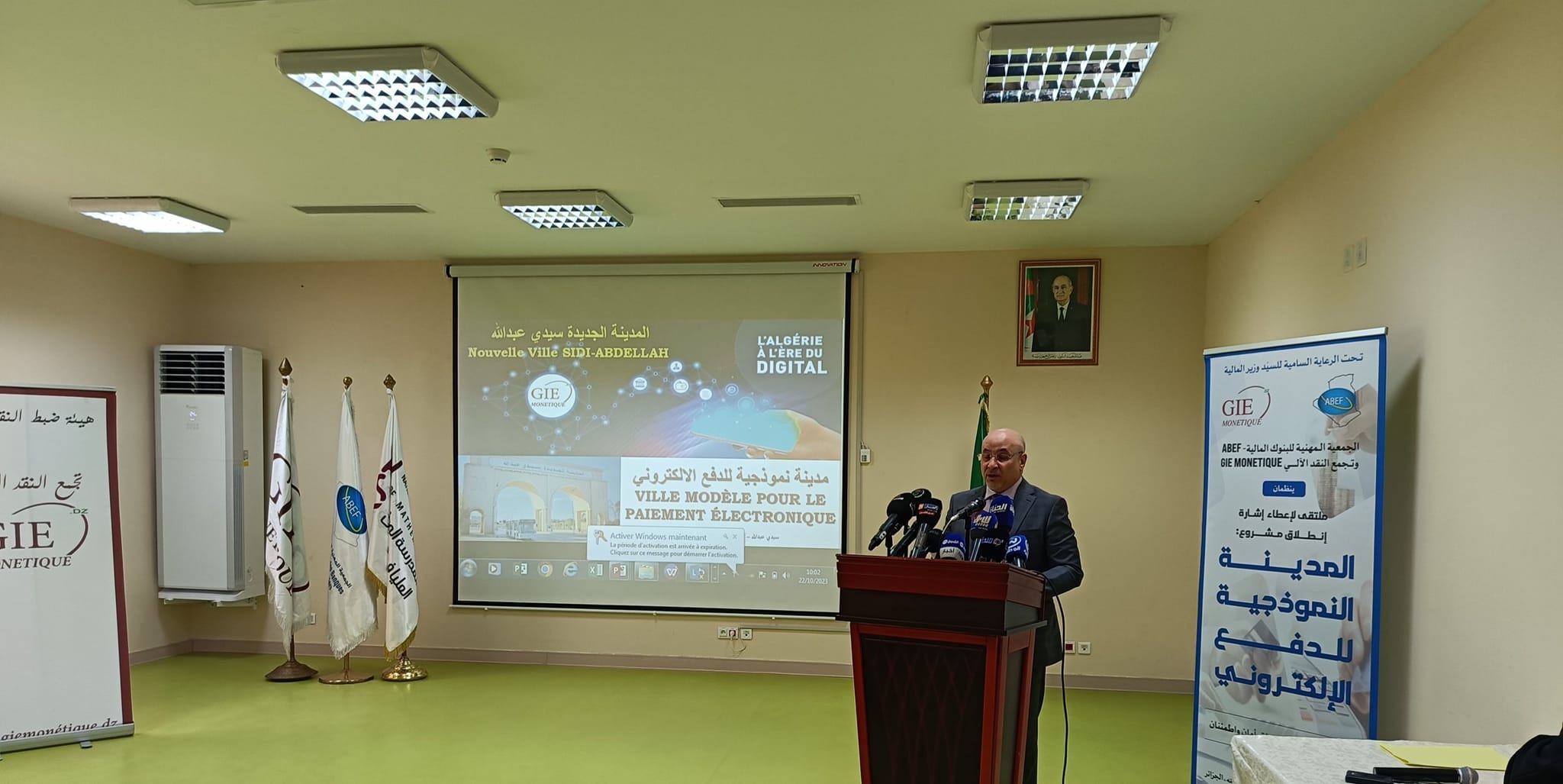 شارك اليوم الأحد 22 أكتوبر 2023، وزير التجارة وترقية الصادرات السيد الطيب زيتوني في ملتقى اعطاء اشارة اطلاق مشروع المدينة الجديدة لسيدي عبد الله .. مدينة نموذجية للدفع الإلكتروني”، المنظم من طرف الجمعية المهنية للبنوك و المؤسسات المالية وتجمع النقد الآلي، على مستوى المدرسة الوطنية للرياضيات، بحضور وزير المالية السيد لعزيز فايد ، ووزير البريد والمواصلات السلكية و اللاسلكية، السيد كريم بيبي تريكي.