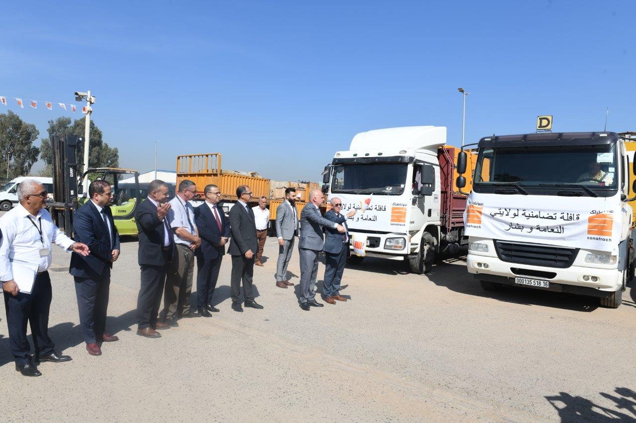 وقد أشرف على الانطلاق الرسمي لهذه القافلة الإنسانية كل من الأمين العام لسوناطراك السيد عبد القادر زروقي، والأمين العام للنقابة الوطنية للشركة السيد خلاف جرود.