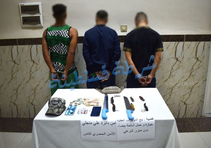 الأمن الحضري الخارجي الثامن علي منجلي يوقف 03 أشخاص ويحجز أسلحة بيضاء محظورة