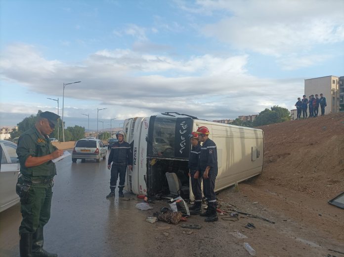 الحادث يتمثل في انحراف حافلة لنقل المسافرين من نوع ايسيزي.