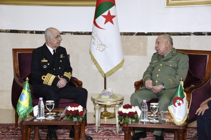 خلال هذا الاستقبال، ألقى السيد الفريق أول كلمة رحّب في مستهلها برئيس هيئة الأركان المشتركة للقوات المسلحة البرازيلية، شاكرا له تلبية الدعوة للمشاركة في إحياء الذكرى السبعين لاندلاع ثورة الفاتح نوفمبر 1954 المجيدة: