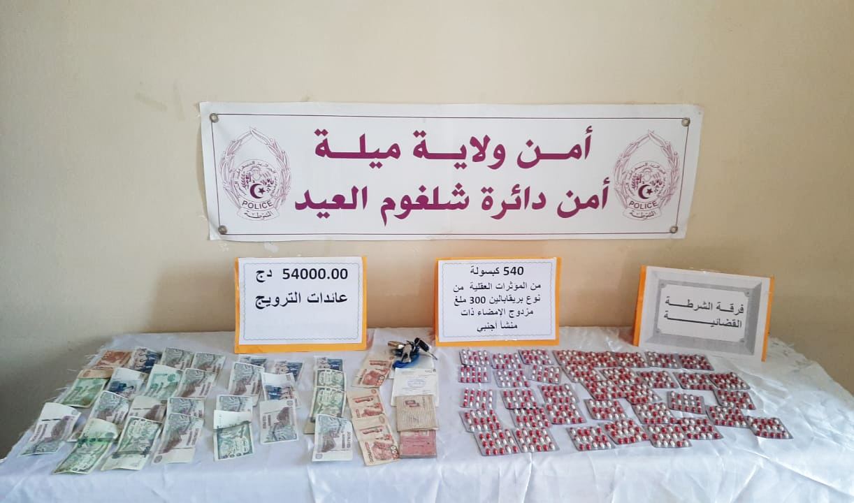 فرقة الشرطة القضائية توقف شخصين يبلغان من العمر 33 و 34 سنة يقومان ببيع و ترويج المؤثرات العقلية على مستوى مدينة شلغوم العيد.