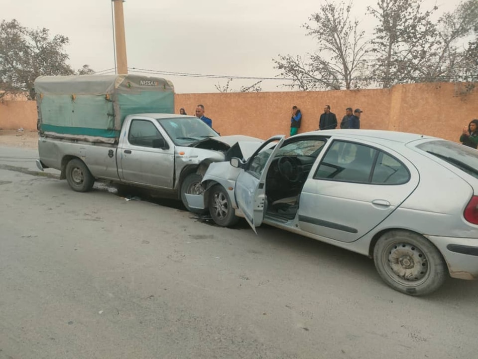 تدخل المركز المتقدم ببوسعادة على الساعة 11سا16د من يوم2024/12/04 على مستوى الطريق الاجتنابي المنطقة الصناعية بوسعادة من أجل حادث مرور تمثل في اصطدام بين سيارتين.