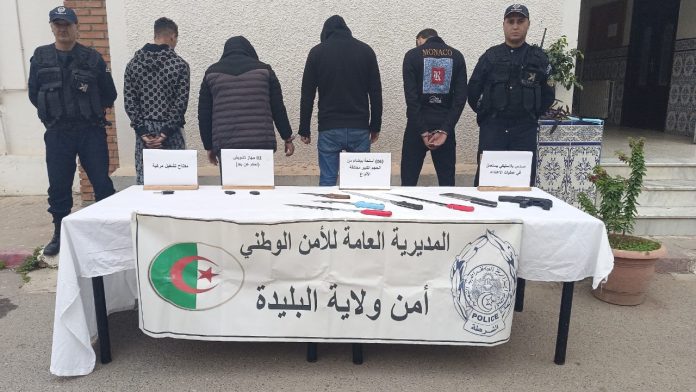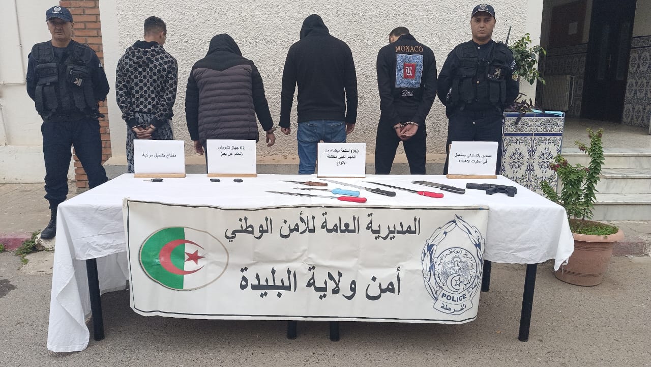 تواصل مصالح الأمن الحضري بني مراد و فرقة الشرطة القضائية بأمن أولاد يعيش لأمن ولاية البليدة عملها الأمني في إطار تطبيق القوانين و محاربة الجرائم و الآفات الإجتماعية داخل الوسط الحضري، حيث تمكن عناصر الضبطية القضائية بحر الأسبوع المنصرم من حل قضيتين تتعلقان بجرم السرقة، الأولى راح ضحيتها إحدى المؤسسات بالمنطقة، حيث قامت عصابة أشرار متكونة من أربعة (04)أشخاص باقتراف جرم السرقة مستغلين ظرف الليل لارتكاب جرمهم و ذلك باستعمال أسلحة بيضاء و معدات أخرى، و بعد ضبطهم و القبض عليهم من طرف عناصر الشرطة بالأمن الحضري بني مراد، تم حجز المعدات و الوسائل التي كانوا يستعملونها في إرتكاب جرائمهم من أسلحة بيضاء.