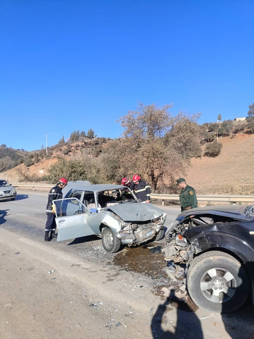 تدخلت مصالح الحماية المدنية على الساعة 10سا 08د من أجل حادث اصطدام تسلسلي بين 03 سيارات بالطريق الوطني رقم 18 بالمكان المسمى واد الاثنين (حمام الصالحين ) ، بلدية ودائرة البرواقية