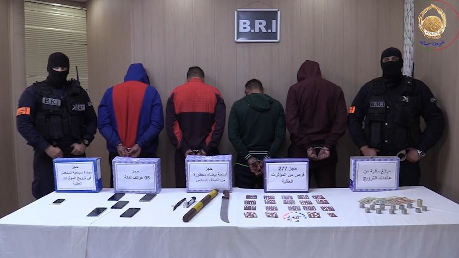 حيثيات القضية تعود إلى ورود معلومات للفرقة مفادها قيام مجموعة من الأشخاص بترويج المؤثرات العقلية، في أوساط الشباب، بإستعمال مركبة سياحية على إثر ذلك قامت الفرقة بوضع خطة محكمة، مكنت من توقيف المشتبه فيهم ويتعلق الأمر بخمسة أشخاص تتراوح أعمارهم مابين 22 و 26 سنة، مع حجز 277 قرص من المؤثرات العقلية من مختلف الأنواع ، مبلغ مالي من العائدات الإجرامية، هواتف نقالة ،سيارة سياحية يستعملها المشتبه فيهم في نقل وترويج المؤثرات العقلية.