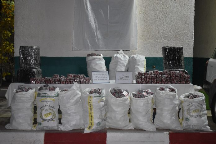 – توقيف (6) أشخاص آخرين وضبط مسدس (1) رشاش من نوع كلاشنيكوف و(4) بنادق صيد ومسدس (1) آلي و(70540) لتر من الوقود، بالإضافة إلى (65) قنطار من مادة التبغ (14) طن من المواد الغذائية الموجهة للتهريب والمضاربة وهذا خلال عمليات متفرقة.
