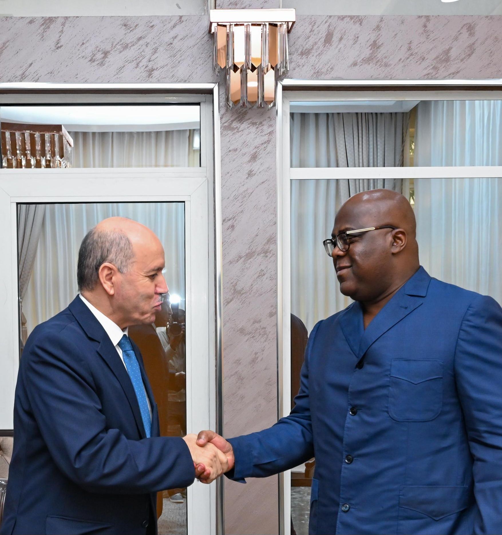 خلال هذه الزيارة، حظي المبعوث الخاص رفقة الوفد المرافق له باستقبال من قبل رئيس جمهورية الكونغو الديمقراطية، السيد فيليكس تشيسكيدي، حيث سلمه رسالة خطية من أخيه رئيس الجمهورية السيد عبد المجيد تبون، في خطوة تعكس الإرادة السياسية المشتركة لتعميق أواصر التعاون بين البلدين، بما يخدم المصالح المشتركة ويعزز الشراكة الاستراتيجية في مواجهة التحديات الإقليمية والدولية.