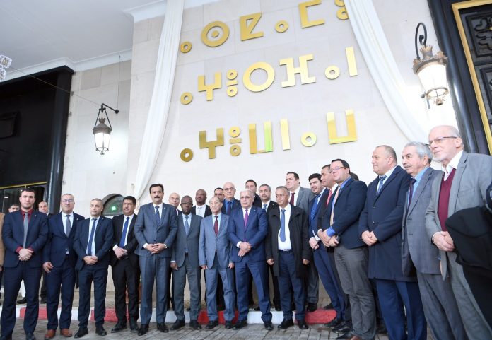 أزاح السيد إبراهيم بوغالي، رئيس المجلس الشعبي الوطني، الستار اليوم الخميس 16 جانفي 2024 الستار عن جدارية تحمل اسم المجلس الشعبي الوطني مكتوبا بخط التيفيناغ.