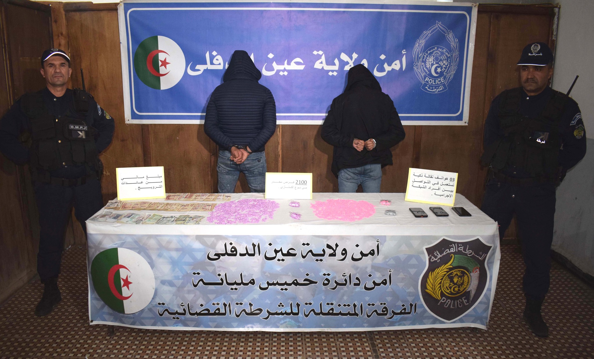 تمكنت الفرقة المتنقلة للشرطة القضائية لأمن دائرة خميس مليانة بولاية عين الدفلى من الإطاحة بشخصين يروجان أقراص الإكستازي و ضبط 2100 قرص إلى جانب مبلغ مالي قارب 28 مليون من عائدات النشاط الإجرامي.