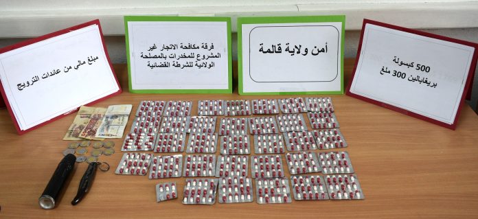 بعد اعداد خطط عملياتية محكمة التنسيق، تمكنت قوات الشرطة بفرقة مكافحة الإتجار غير المشروع للمخدرات بأمن ولاية قالمة من ضبط وحجز 500 كبسولة من المؤثرات العقلية، قارورة غاز مسيلة للدموع و مبلغ مالي من عائدات الترويج.
