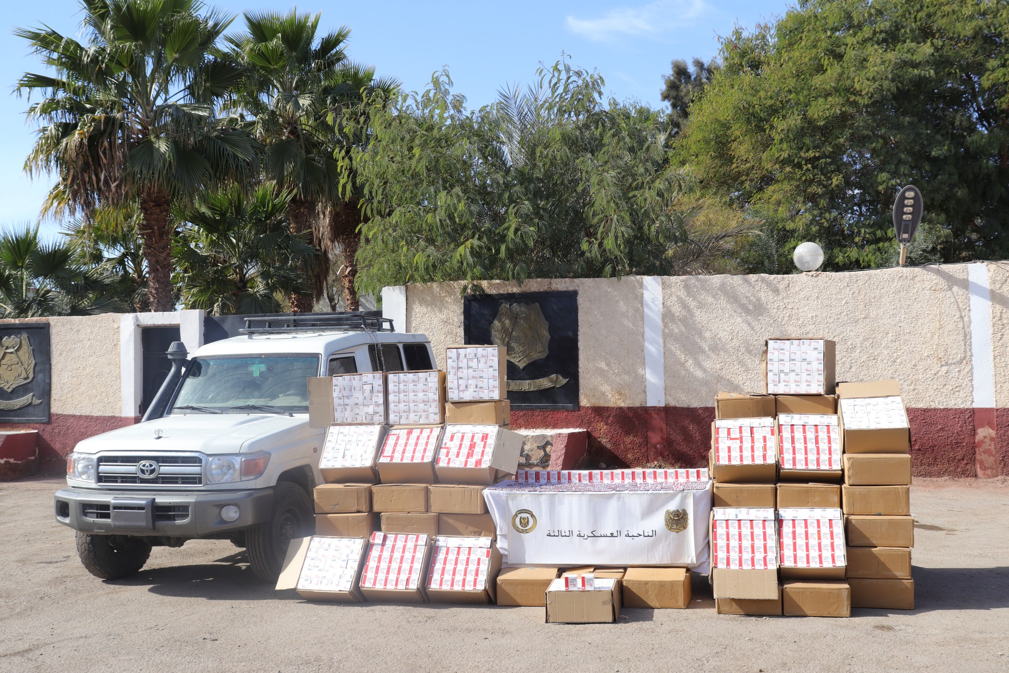 – توقيف (28) شخصا آخر وحجز(3) مسدسات رشاشة من نوع كلاشنيكوف و(15) بندقية صيد ومسدسين (2) آليين و(95.420) لتر من الوقود، بالإضافة إلى (17) قنطار من مادة التبغ و(4) أطنان من المواد الغذائية الموجهة للتهريب والمضاربة، خلال عمليات متفرقة.