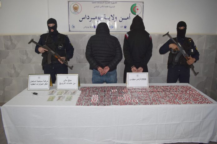 الضبطية القضائية بأمن دائرة خميس الخشنة تطيح بشخصين كانا بصدد ترويج كمية هامة من المهلوسات. الكمية المحجوزة كانت مخبأة بإحكام داخل إحدى المركبات