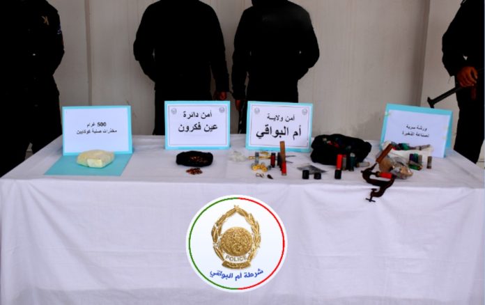 القضية تمت على إثـر تمكن عناصر أمن دائرة عين فكرون من استقاء معلومة عملياتية مفادها قيام شخصين بتخزين وترويج المخدرات الصلبة “كوكايين” بمسكنهما العائلي على مستوى حي بوعافية بمدينة عين فكرون وبالتنسيق مع نيابة محكمة عين فكرون المختصة إقليميا تم توقيف المشتبه فيهما وتفتيش مسكنهما أين تم ضبط وحجز كمية من المخدرات الصلبة “كوكايين” قدرت إجمالا بوزن 527.03 غرام..