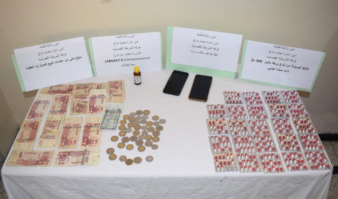 مواصلة للمجهودات المبذولة من قبل المصالح العملياتية لأمن ولاية قالمة في مجال محاربة الاتجار غير المشروع بالمخدرات والمؤثرات العقلية، تمكنت قوات الشرطة القضائية أمن دائرة حمام دباغ بأمن ولاية قالمة ، بعد الاستغلال الجيد للمعلومات التي تفيد بقيام أحد الاشخاص المشتبه فيهم بترويج المخدرات و المؤثرات العقلية على مستوى مدينة حمام دباغ من توقيف ثلاثة أشخاص مشتبه فيهم، مقيمون بحمام دباغ.
