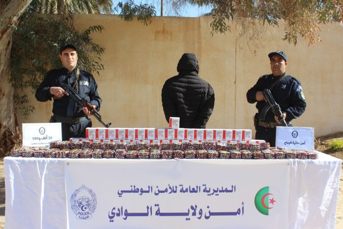 تمكّنت مصالح الشرطة القضائية لأمن دائرة الرباح بأمن ولاية الوادي، بحر الأسبوع المنصرم، من توقيف شخص ينشط في الإتجار غير المشروع بالمؤثرات العقلية، مع ضبط 20 ألف و580 كبسولة من نوع بريغبالين 300 ملغ.