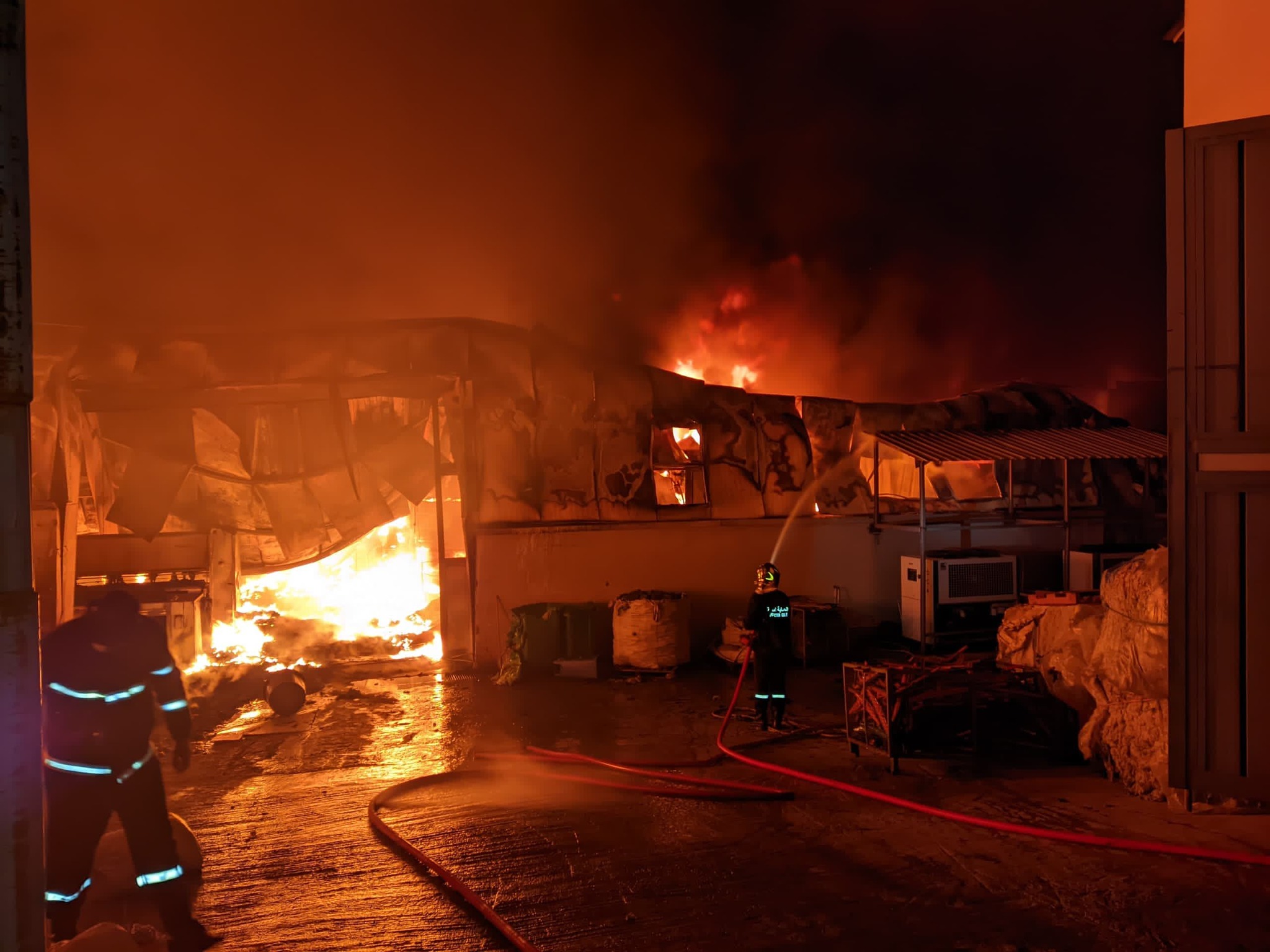 عملية الاخماد و الحريق متحكم فيه مع تسجيل إحتراق كلي لورشة التصنيع بها آلات، إحتراق مواد أولية، شاحنة، الجناح الإداري متكون من طابق أرضي + 1.