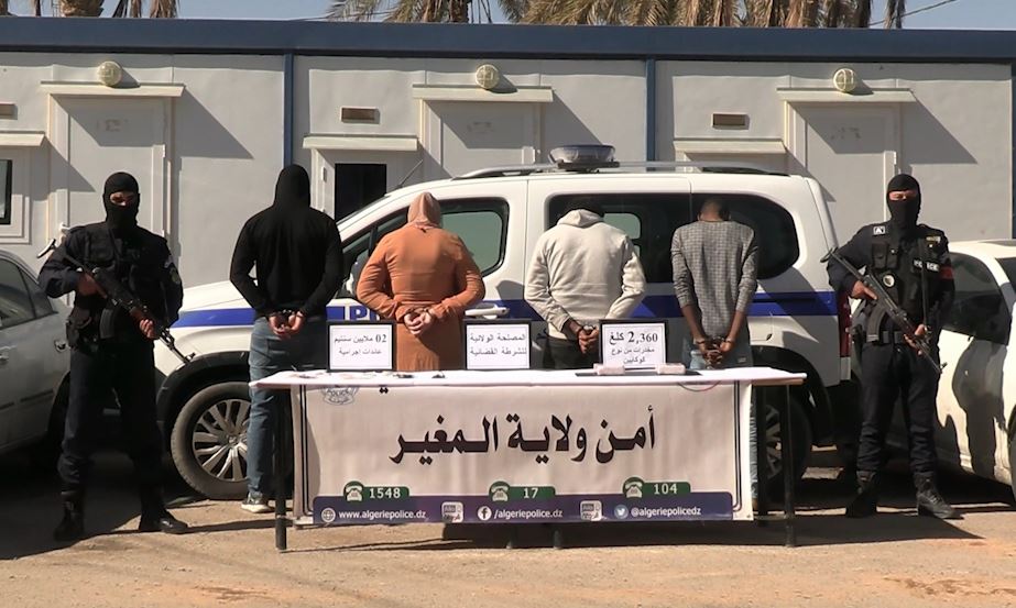 تمكنت مصالح الشرطة القضائية لأمـــن ولاية المغير، بحر الأسبوع المنصرم، من توقيف أربعة أشخاص من بينهم إمرأة، ينشطون ضمن شبكة إجرامية منظمة مختصة في الإتجار غير المشروع بالمخدرات الصلبة كوكايين، مع ضبط 02 كلغ و360 غ من الكوكايين.