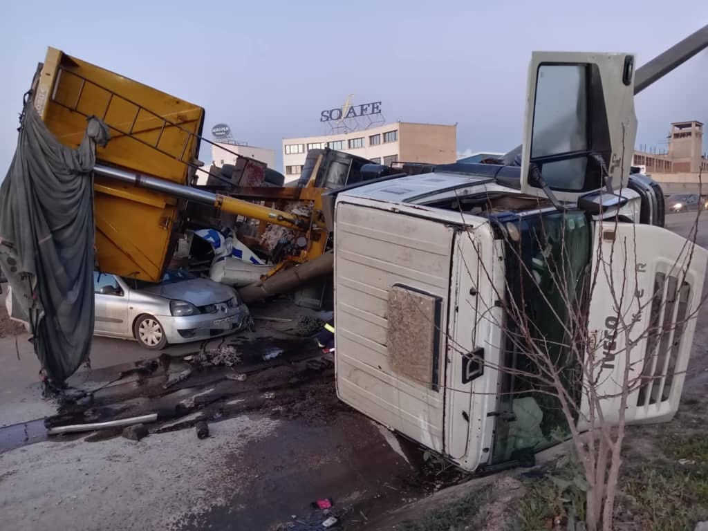 تمثل في انقلاب شاحنة وسقوطها على سيارة سياحية على الطريق الوطني رقم 75 شرق المنطقة الصناعية سطيف إثر ارتفاع مفاجئ لصندوق مقطورة الشاحنة واصطدامه بلوح كبير علوي لإشارات التوجيه للطريق.