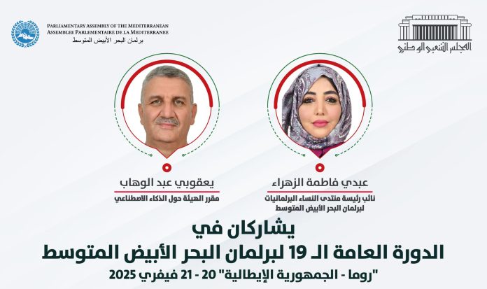 يشارك النائبان فاطمة الزهراء عبدي، نائب رئيسة منتدى النساء البرلمانيات لبرلمان البحر الأبيض المتوسط، رفقة السيد عبد الوهاب يعقوبي، مقرر الهيئة حول الذكاء الاصطناعي، في أشغال الدورة العامة التاسعة عشرة لبرلمان البحر الأبيض المتوسط، والمقرر انعقادها في العاصمة الإيطالية روما يومي 20 و21 فيفري الجاري.