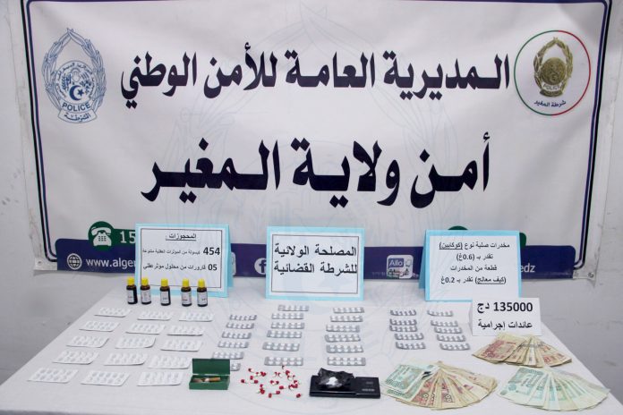 العملية تعود لمعلومات مفادها نشاط مشبوه لأحد الأشخاص مسبوق قضائيا ، يقوم بترويج المخدرات و المؤثرات العقلية وسط شباب أحد أحياء المدينة ، أين تم تفعيل التحري و الاستعلام مكن من تحديد هويته و مكان إقامته بدقة ، ليتم وضع خطة ميدانية من أجل توقيفه ، مع إستصدار إذن السيد وكيل الجمهورية لدى محكمة المغير ،لتفتيش مسكنه ، العملية مكنت من توقيف المشتبه فيه و برفقته شخصين آخرين ، مع ضبط :
