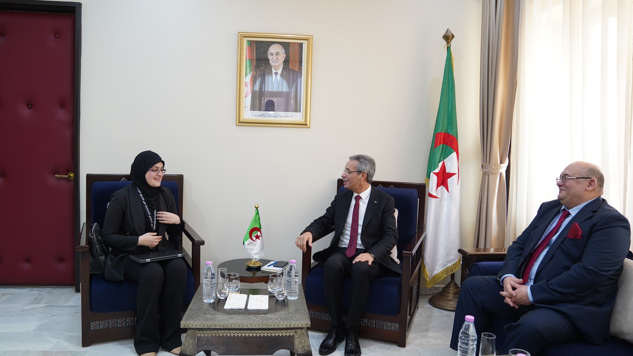 خلال اللقاء، قدّم السيد الوزير تهانيه للطالبة المخترعة وعبر عن اعتزازه بهذا الإنجاز الذي يعكس تفوق الشباب الجزائري في مجالات البحث والابتكار اثناء مشاركتهم في المسابقات الدولية في مختلف دول العالم، مشيدا بقدراتها العلمية وابتكاراتها التي تساهم في رفع مكانة الجزائر في المحافل الدولية، كما أكد على أهمية دعم وتشجيع مثل هؤلاء المبدعين لتطوير اختراعاتهم وإدماجها في الحركية الاقتصادية، كما أبدى استعداده لمرافقتها وتقديم الدعم الكامل لها، لتحقيق إنجازات أكبر في مجال البحوث الأثرية.