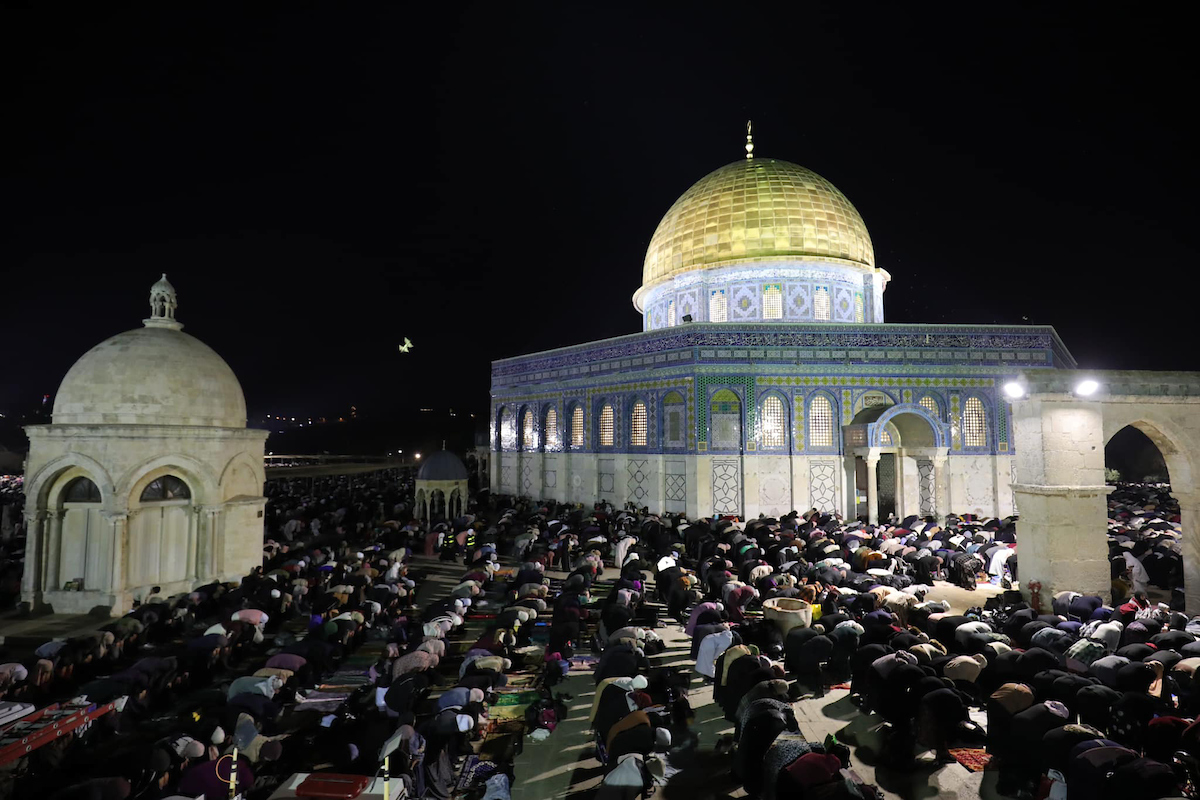 أدى أكثر من 80 ألف فلسطيني صلاتي العشاء والتراويح في اليوم الرابع من شهر رمضان المبارك في رحاب المسجد الأقصى المبارك في ظل إجراءات عسكرية مشددة تفرضها سلطات الاحتلال الصهيوني على الوصول إلى المسجد.