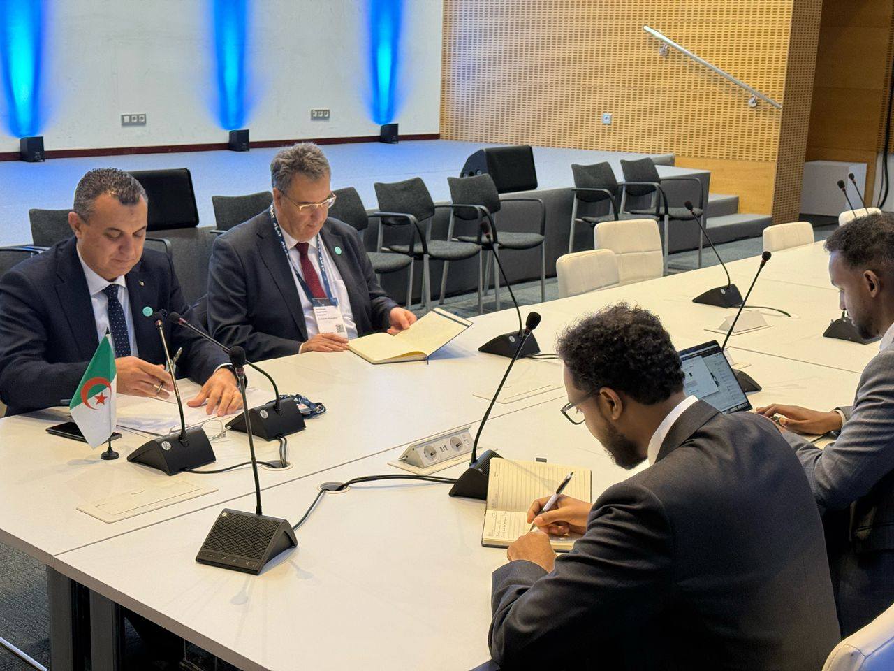 أجرى وزير البريد والمواصلات السلكية واللاسلكية, سيد علي زروقي, محادثات ثنائية مع نظيريه الصومالي, أحمد عثمان ديري, والموزمبيقي, أميريكو موشانغا, وذلك على هامش المؤتمر العالمي للهاتف النقال 2025, الجاري ببرشلونة-إسبانيا.