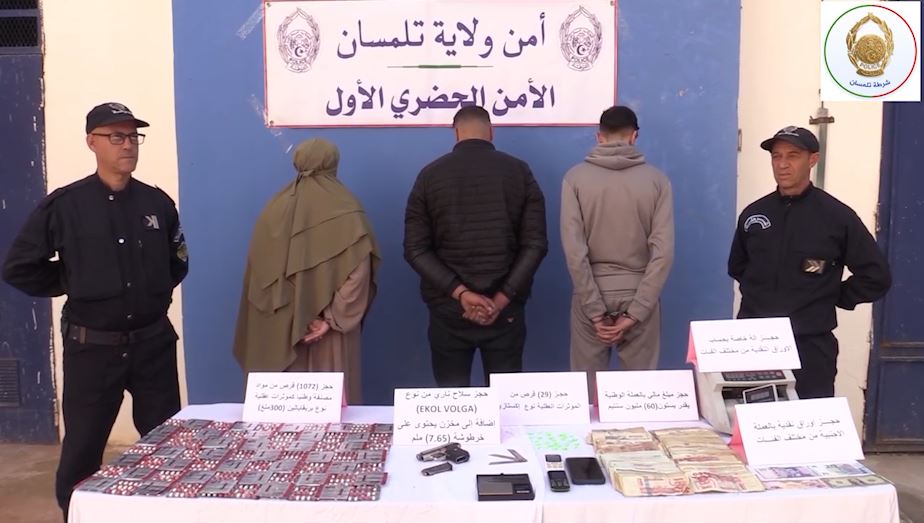 الأمن الحضري الأول التابع لأمن ولاية تلمسان يحبط نشاط شبكة إجرامية متكونة من 03 أشخاص من بينهم إمرأة مختصة في المتاجرة بالمخدرات الصلبة والمؤثرات العقلية.